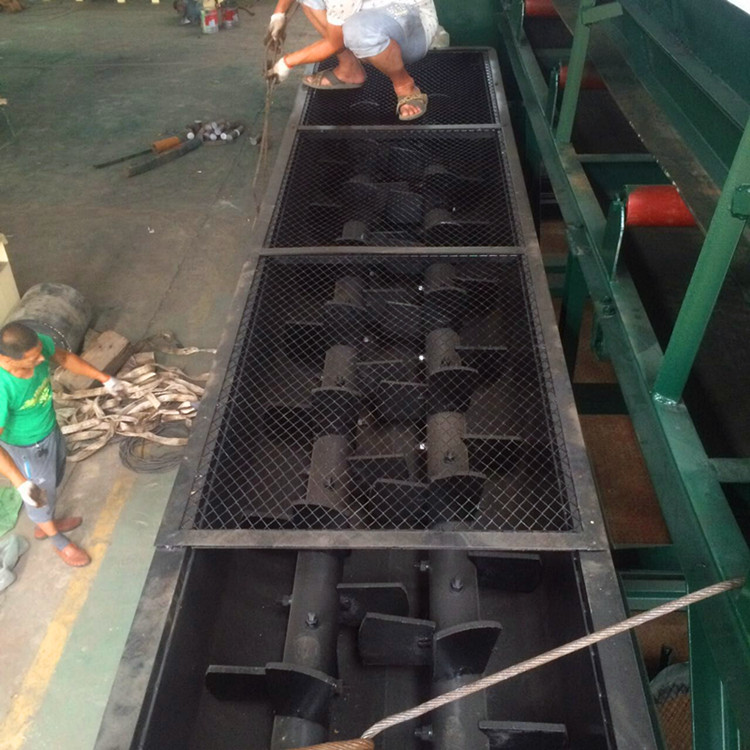 2螺旋轴总成是双轴搅拌机的主要组件,其组件主要包括左右螺旋轴,轴承箱,轴承套,轴承盖,齿轮,链轮,油杯,叶子等零件。